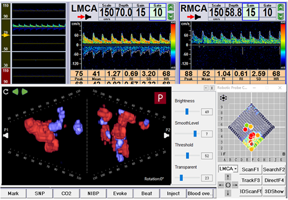 3D Imaging Function in TCD exam intuitively visualizing detected cerebral vessels and displaying vessel distribution
